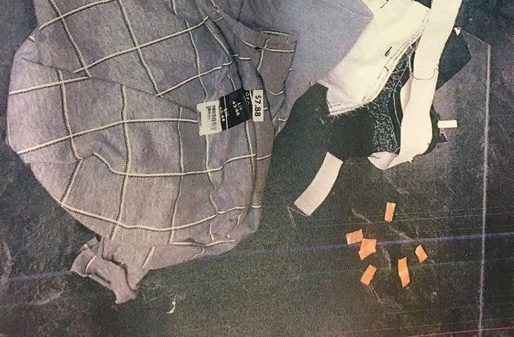 Como estaba planeado, la mujer dejó la ropa, todavía llevando etiquetas de Walmart, en una bolsa gris de esa tienda, en la oficina del abogado en Salem.