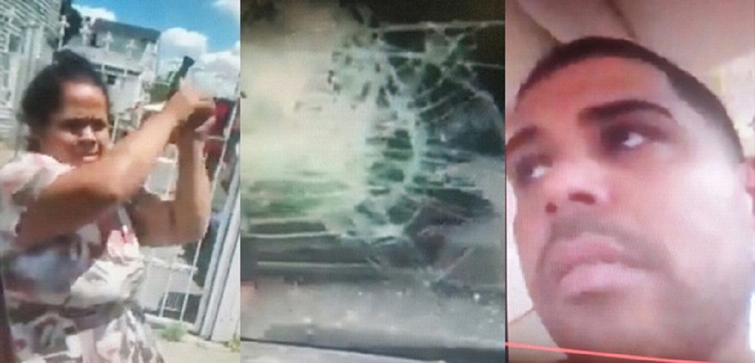 El video, que se ha vuelto viral en las redes sociales, muestra a la mujer, oriunda de Salcedo según informes oficiales, rompiendo todos los vidrios del vehículo marca Range Rover negro sin tener la menor compasión y cuidado de que los menores se encontraban junto a su papá sentados en la parte trasera.