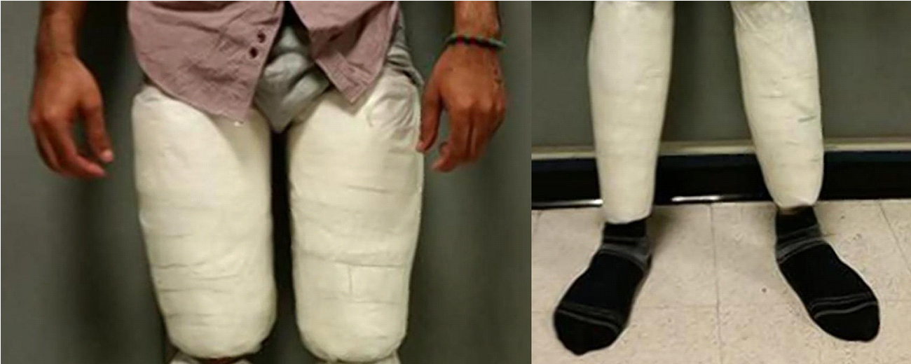 Cuando los oficiales de la CBP, se fijaron en su pantalón, observaron que le quedaba incómodo y que estaba abultado. Allí, encontraron la cocaína en paquetes pegados con cinta adhesiva alrededor de las dos piernas.