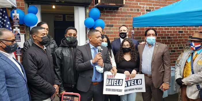 NUEVA YORK.- El candidato a la presidencia del condado del Bronx, el dominicano Sammy Ravelo, recibió un respaldo masivo de quisqueyanos que representan diversos sectores al inaugurar su comando de campaña el pasado fin de semana.