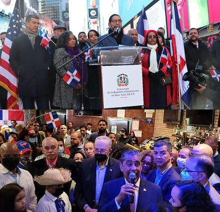 El consulado dominicano culminó su celebración en la emblemática plaza de Times Square en Manhattan, donde el cónsul Eligio Jáquez resaltó que la RD es un país valiente, aguerrido, de hombres y mujeres que salen todos los días bordeando cordilleras y mares en busca de un futuro mejor para sus descendientes.