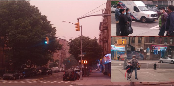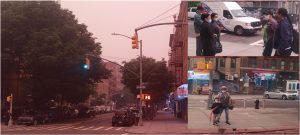 En las calles de Washington Heitghs (Alto Manhattan) con varios vecindarios y en El Bronx, áreas donde se concentran la mayoría de la población dominicana en la ciudad, el cielo cambió su color azul a sepia oscureciendo desde día y noche y creando síntomas de problemas respiratorios en muchos residentes, aunque hasta ahora no hay reportes de internos en los hospitales.