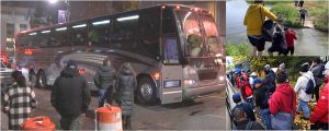 Madres cargando sus bebés, hombres y mujeres poco abrigados encontraron una temperatura de 40 grados en Filadelfia. Algunos bajaron de los autobuses con camisetas manga corta, por lo que los funcionarios y activistas comunitarios les dieron frazadas y abrigos para cubrirse.