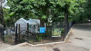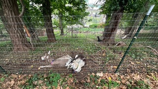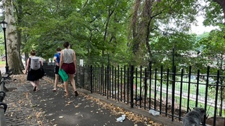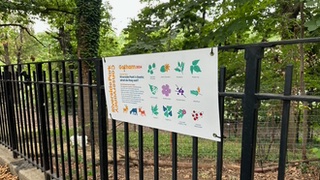 Las siete guardianes de la biodiversidad que trabajan en Riverside Park provienen de Green Goats (cabras/Chivos Verdes) en Rhinebeck, Nueva York. Esta es su quinta temporada.