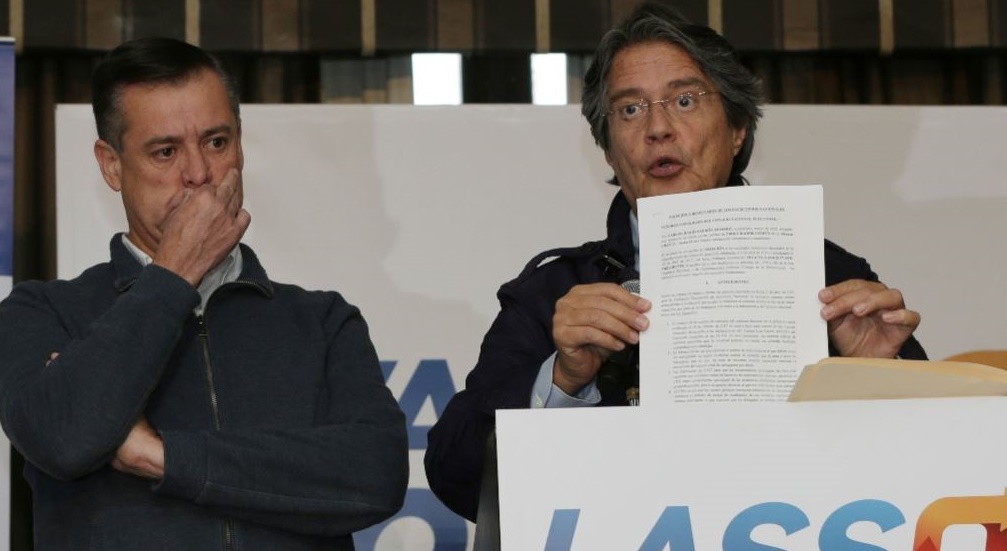 Tanto el partido de Lasso, CREO, como el de Moreno, Alianza País, presentaron recursos por separado en los que denunciaron irregularidades numéricas en las actas electorales, inconsistencias en esos documentos y atribución de los sufragios al otro postulante.