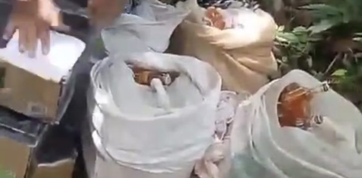 Las bebidas alcohólicas de procedencia ilegal fueron dejadas abandonadas dentro de unos sacos cuando se aproximaba al lugar una patrulla del ERD.