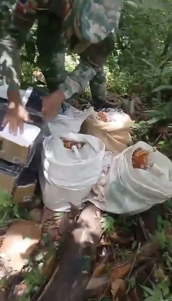 DAJABÓN. – Miembros del Ejército de República Dominicana ocuparon 648 botellas de ron que fueron encontradas en unos matorrales en la comunidad Villa Anacaona, municipio Restauración, provincia Dajabón.