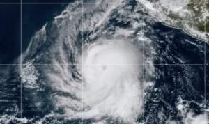 La tormenta estaba 960 kilómetros (595 millas) al suroeste del extremo sur de la península de Baja California, en México, y se desplazaba al oeste a 31 kilómetros por hora (20 millas por hora). Sus vientos máximos sostenidos eran de 155 km/h (100 mph), según el Centro Nacional de Huracanes de Estados Unidos, con sede en Miami.