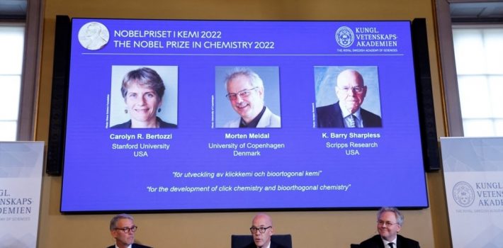 Los estadounidenses Carolyn R. Bertozzi y K. Barry Sharpless y el danés Morten Meldal fueron reconocidos por su labor en química clic y reacciones bioortogonales, que sirven para producir medicamentos contra el cáncer, analizar ADN y crear materiales a medida para usos concretos.