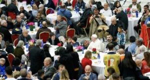 Para mostrar actos concretos de solidaridad, el Vaticano invitó a unas 1.300 personas a comer en el salón de audiencias del Vaticano tras la misa.