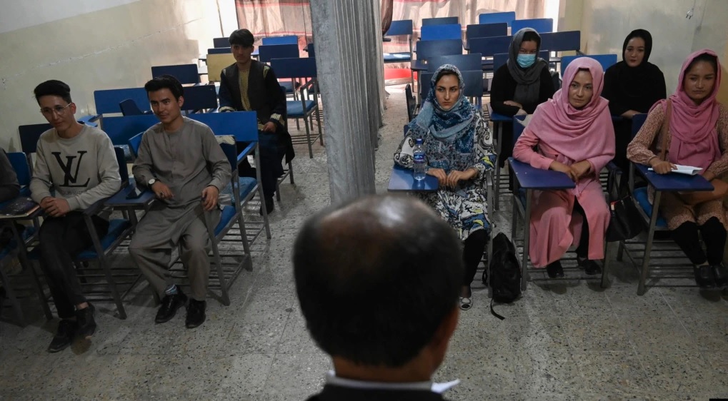 Aunque las universidades públicas están cerradas en Afganistán debido más que nada a la pandemia del coronavirus, las privada abrieron hace una semana y las clases están divididas por cortinas.
