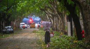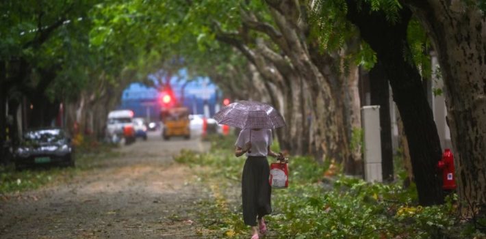 El tifón Bebinca llena calles de Shanghái de agua y ramas rotas