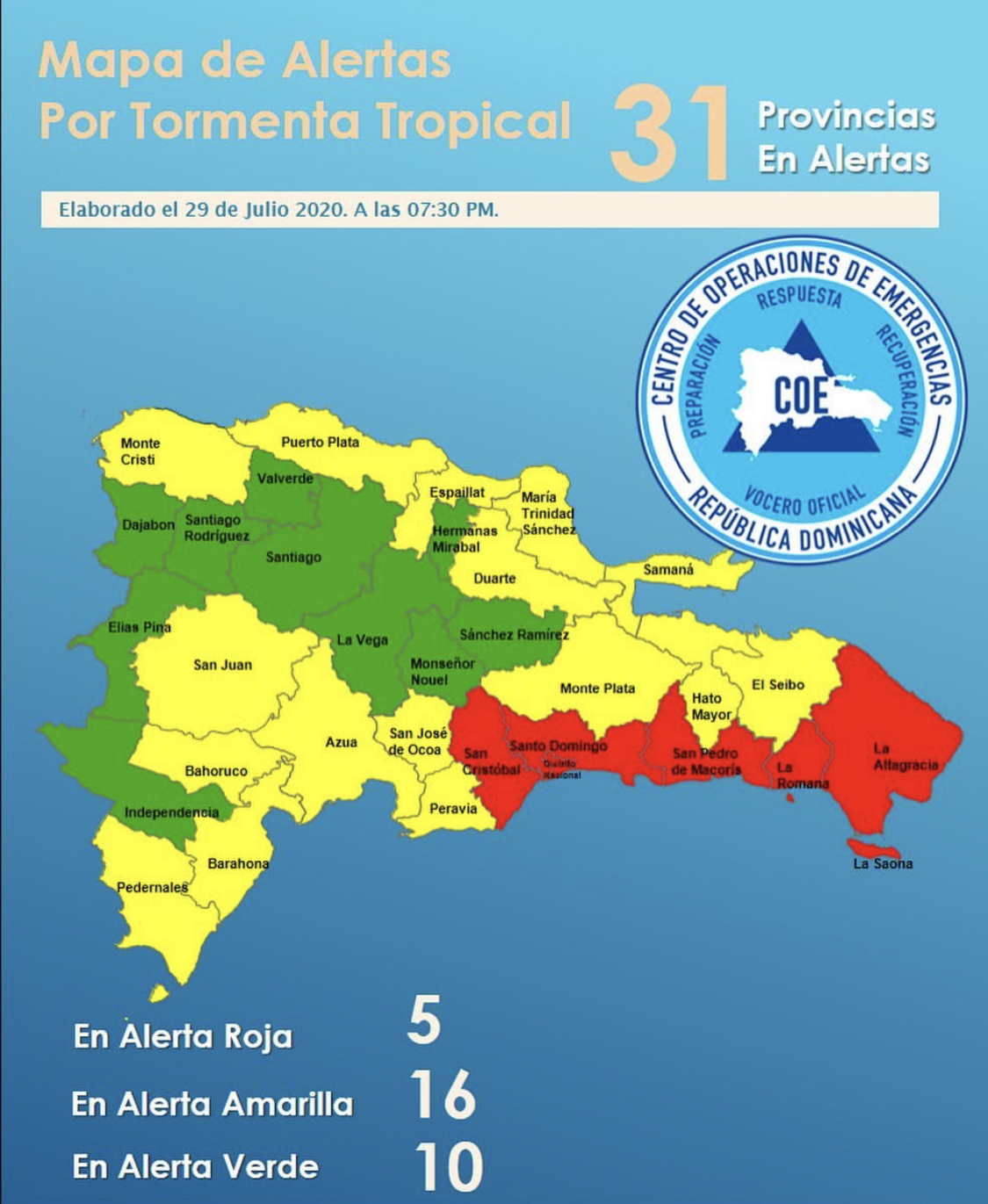 Elevan 5 provincias a alerta roja por potencial ciclón tropical