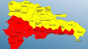 El Centro de Operaciones de Emergencias (COE), informó que continúan 14 provincias en alerta roja, y que aumentan a 18 las provincias en amarilla, debido a la Tormenta Tropical Franklin que este lunes fue ubicado al sur de la Isla Saona, a unos 420 km al sur/sureste de Santo Domingo.