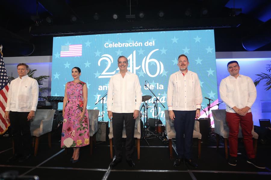 Santo Domingo, D.N.- La Embajada de los Estados Unidos en Santo Domingo celebró el 246 aniversario de la independencia estadounidense con una recepción presidida por el encargado de negocios, el señor Robert W. Thomas, con la asistencia del presidente Luis Abinader y el ministro de Relaciones Exteriores Roberto Álvarez como invitados de honor.