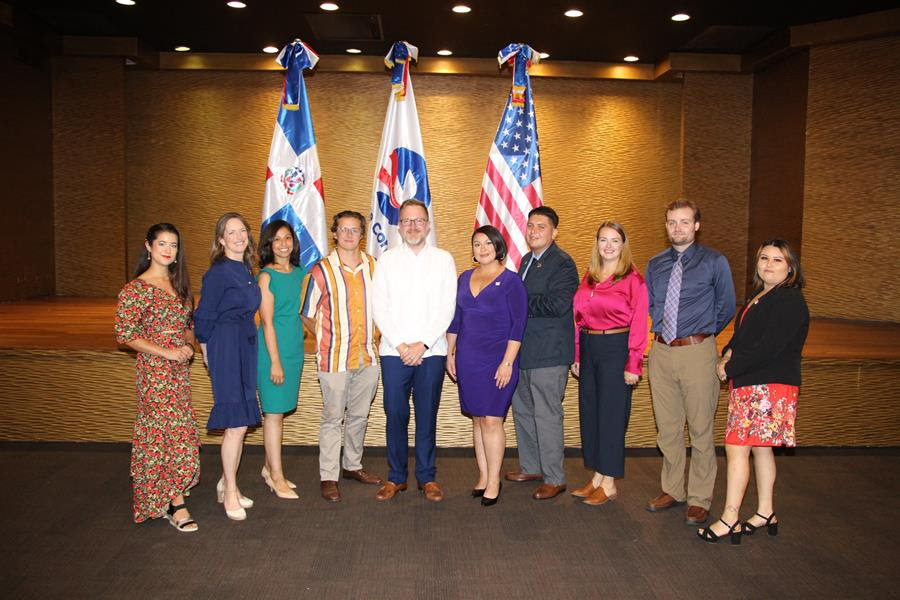 Santo Domingo, D.N.- El encargado de Negocios de la Embajada de los Estados Unidos en la República Dominicana, Robert Thomas, juramentó a once nuevos técnicos voluntarios del Cuerpo de Paz, el primer grupo nuevo que inicia sus labores luego de la pausa causada por la pandemia del COVID-19.