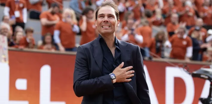 Un montaje con sus momentos más memorables en el torneo se proyectó en las pantallas gigantes, provocando lágrimas en el 22 veces campeón de Grand Slam. “Esto es duro”, dijo Nadal en francés, antes de continuar su emotivo discurso en inglés y español.