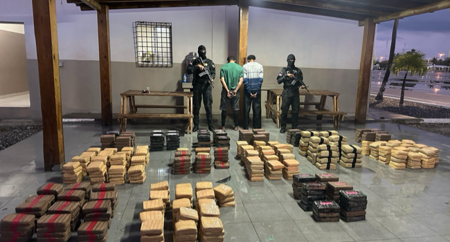 Los individuos, al notar la presencia de las unidades marítimas, comenzaron a lanzar las pacas al mar Caribe, iniciando de inmediato una operación de rastreo, ubicación y recolección, logrando recuperar de las aguas 12 sacos, siete de ellos, con 177 paquetes presumiblemente cocaína y otros cinco con 435 de marihuana, para un total de 612 paquetes.