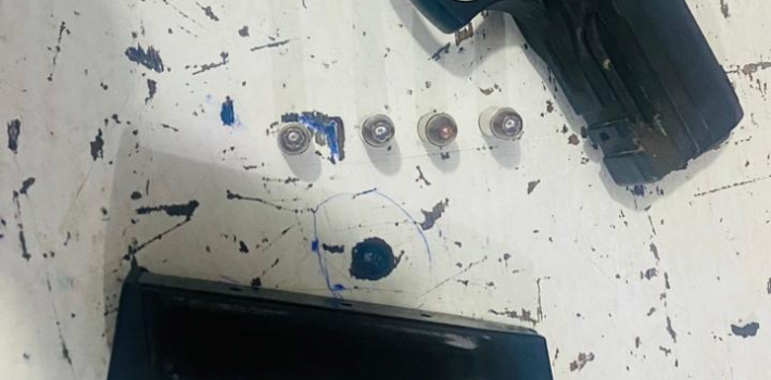 En el área monumental fue apresado José Oscar Peralta Rodríguez, quien al notar la presencia policial mostró actitud sospechosa, siendo retenido y requisado, ocupándole la pistola marca Glock 9X19, no. MYD207, con su cargador y 11 cápsulas para la misma, portada sin ningún tipo de documentos.