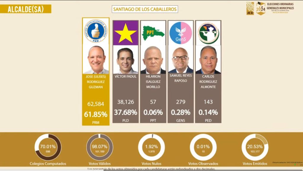 En vivo: Transmisión de resultados de las elecciones municipales 2024 Kilvin Toribio hace 2 años Aquí estamos trasmitiendo los resultados de las elecciones municipales 2024, desde la Junta Central Electoral.