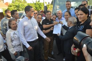 Con los autobuses entregados por el viceministro administrativo de la presidencia Alexis Lantigua, en representación del presidente Danilo Medina y por el senador Julio César Valentín, decenas de familias de lugares apartados de los centros de educación superior serán beneficiados al reducirles los gastos de transporte y al concederles un transporte más seguro para sus hijos a altas horas de la noche.