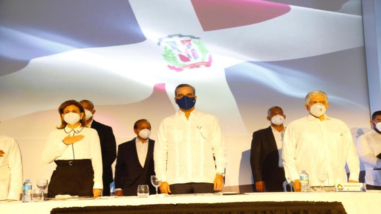 En la mesa principal de la actividad acompañaron al presidente, Raquel Peña, vicepresidenta de la República; Eduardo Estrella, presidente del Senado y Alfredo Pacheco, presidente de la Cámara de Diputados.