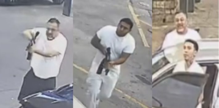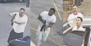 La uniformada ha publicado fotografías y un video de vigilancia de los sospechosos con metralletas en manos y disparando.