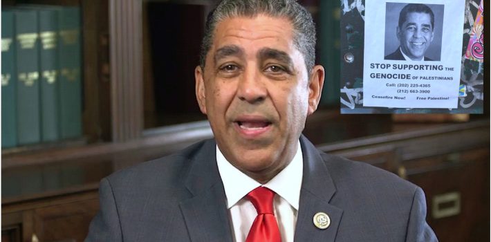 La campaña contra el único legislador federal dominicano en la Cámara de Representantes incluye volantes distribuidos en áreas estratégicas del Alto Manhattan llamando a las comunidades a pedirle a Espaillat que pare el apoyo al genocidio de Israel contra Palestina.