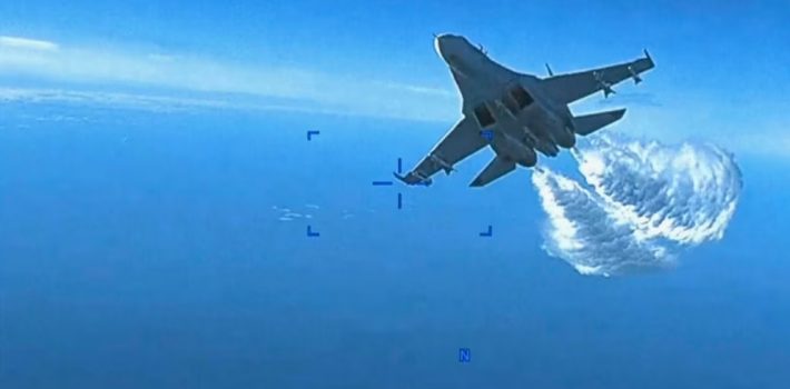 El Pentágono divulgó imágenes de lo que dice es un avión ruso que realiza una interceptación insegura de un dron de vigilancia de la Fuerza Aérea de Estados Unidos en el espacio aéreo internacional sobre el Mar Negro.