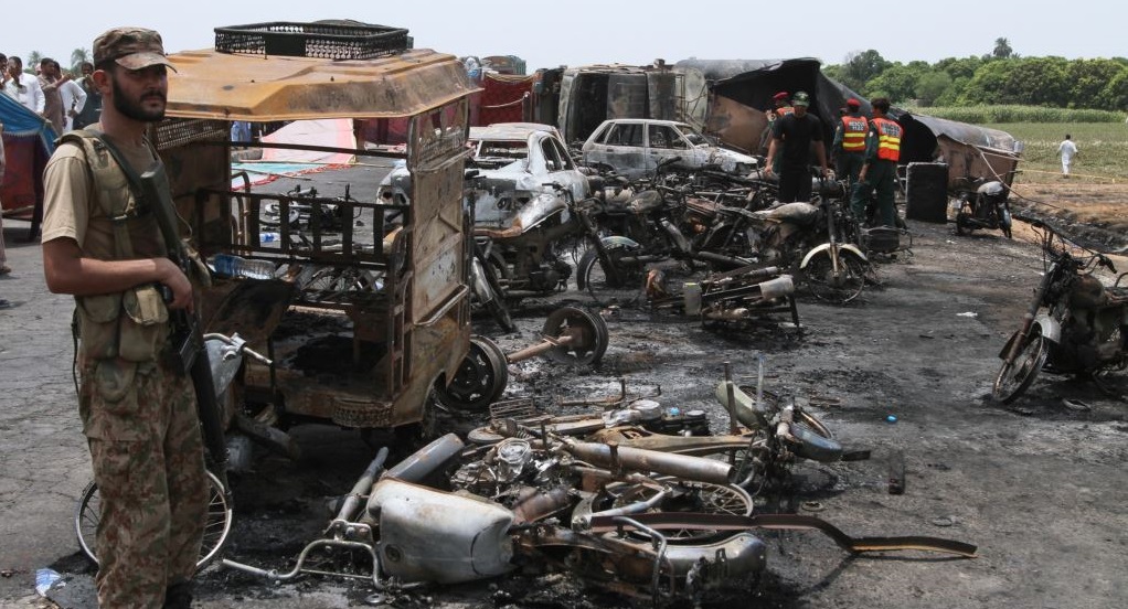 El camión cisterna volcó sobre la autopista nacional aproximadamente 100 kilómetros (60 millas) al suroeste de Multan. El vehículo era conducido de la ciudad portuaria de Karachi, en el sur del país, a Lahore, la capital de la provincia de Punjab, cuando el chofer perdió el control y chocó.