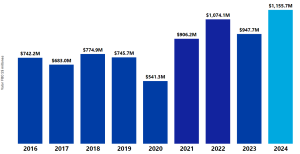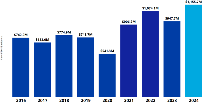 El crecimiento interanual de las exportaciones es de 55% en comparación con el 2019 y 22% respecto de 2023.