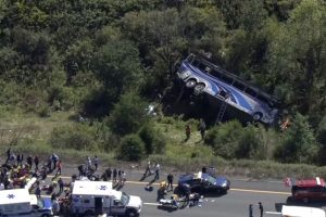 NUEVA YORK.- El fatal accidente de un autobús con 40 estudiantes y 4 adultos que iban a bordo la tarde de este jueves en la I-84 cerca de la ciudad de Wawayanda, en el condado de Orange, a 72 kilómetros de la Gran Manzana, dejó como saldo dos personas muertas y decenas de estudiantes heridos.