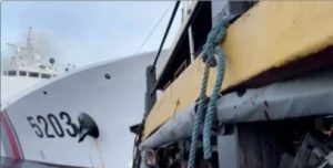 En el primer incidente ocurrido el domingo por la mañana, “peligrosas maniobras de bloqueo del barco 5203 de la guardia costera china hicieron que colisionara con el barco indígena de suministro Unaiza May 2 contratado por las Fuerzas Armadas de Filipinas”, indicó el equipo de trabajo. Esta acción “provocadora, irresponsable e ilegal” del barco guardacostas “puso en peligro la seguridad de la tripulación”.