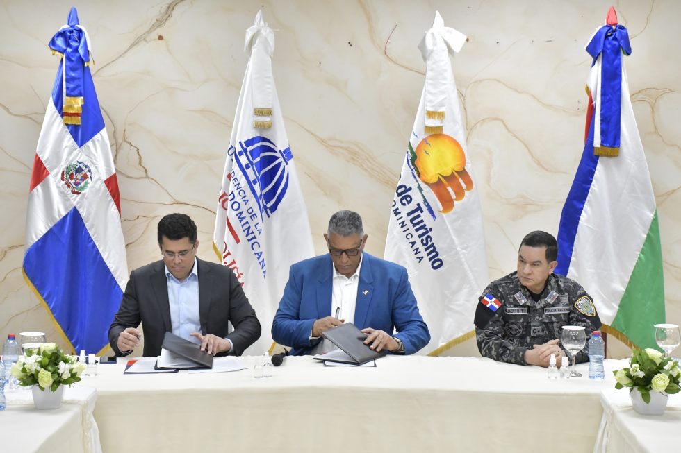 El ministro de Turismo y el de Interior y Policía durante la firma de la resolución