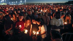 Shay Makinde, de 16 años, se esforzaba en contener las lágrimas por los amigos que intentó salvar pero no pudo. El estudiante de penúltimo año jaló del pasillo a los estudiantes que huían para hacerlos entrar a un salón de clases. Giró para jalar a Joaquin Oliver pero era demasiado tarde. La vigilia «me hizo ver de nuevo a mi amigo y verlo cuando lo baleaban y ver su cuerpo en el piso».