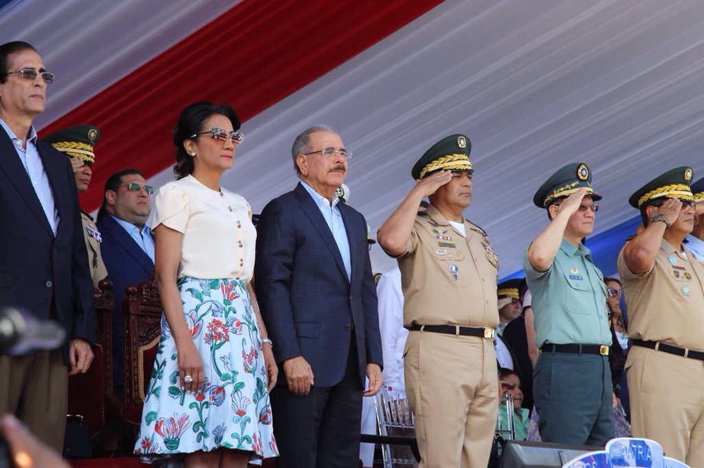 Como cada año, el desfile militar se realizó en la avenida George Washington. En la tarima presidencial el jefe de Estado estuvo acompañado además por funcionarios del gabinete gubernamental.