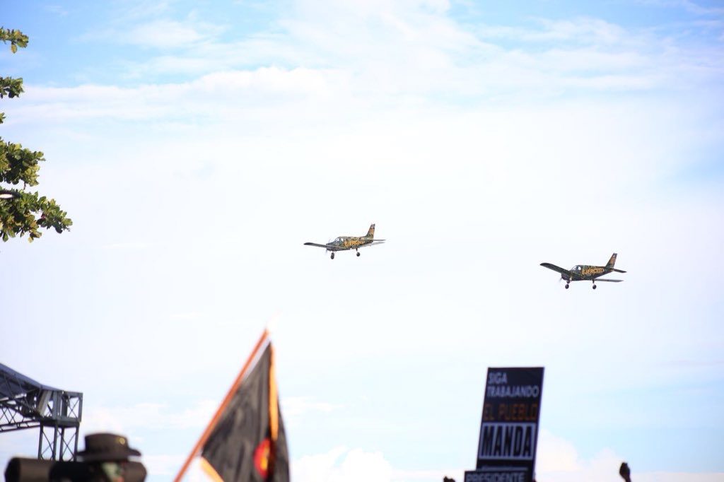 La actividad inició con una salva de 21 cañonazos, honores militares correspondientes a la investidura del jefe de Estado. También se dio un toque de atención presidencial.