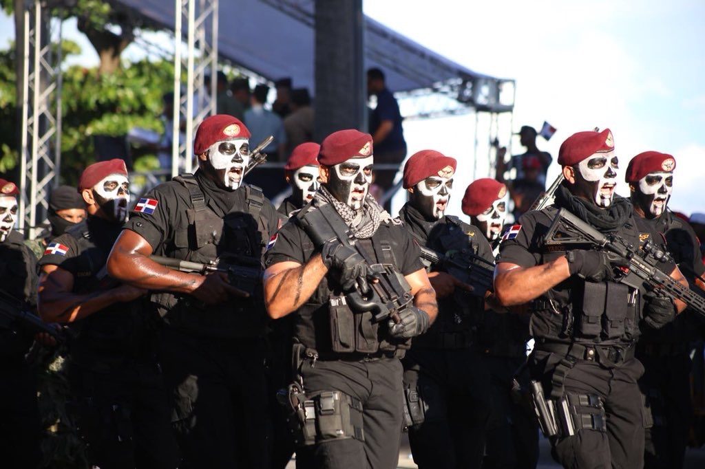 También, por el palco presidencial pasaron las Fuerzas Especiales de la Armada Dominicana y el Comando Anfibio. Además, las unidades Swat y el Cuerpo Canino de la Policía Nacional.