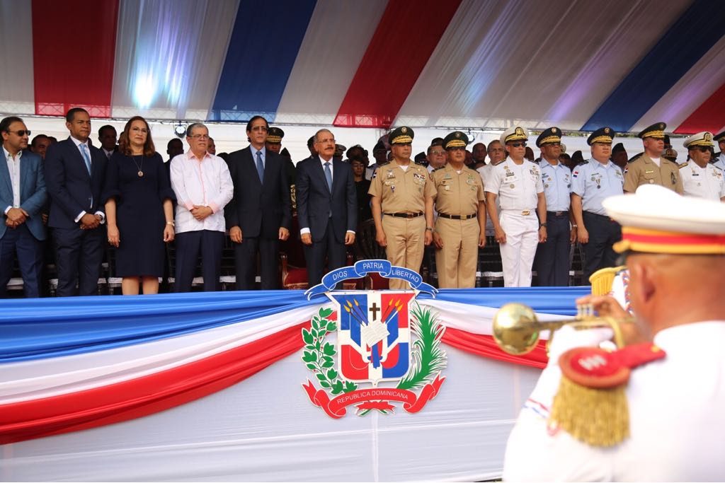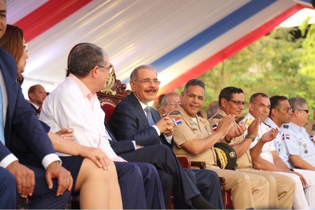 Durante el acto, Danilo Medina estuvo acompañado de los ministros de Defensa, teniente general Rubén Darío Paulino Sem; de la Presidencia, Gustavo Montalvo; y de Interior y Policía, Carlos Amarante Baret; y de Obras Públicas, Gonzalo Castillo.