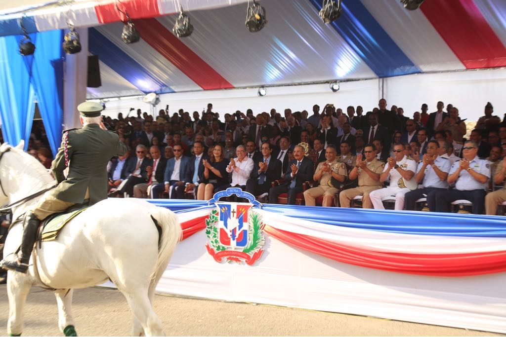 El desfile cívico-militar y policial se extendió por cerca de dos horas, tiempo durante el cual Danilo Medina se mostró atento y entusiasmado. Al finalizar la actividad, saludó a la concurrencia.