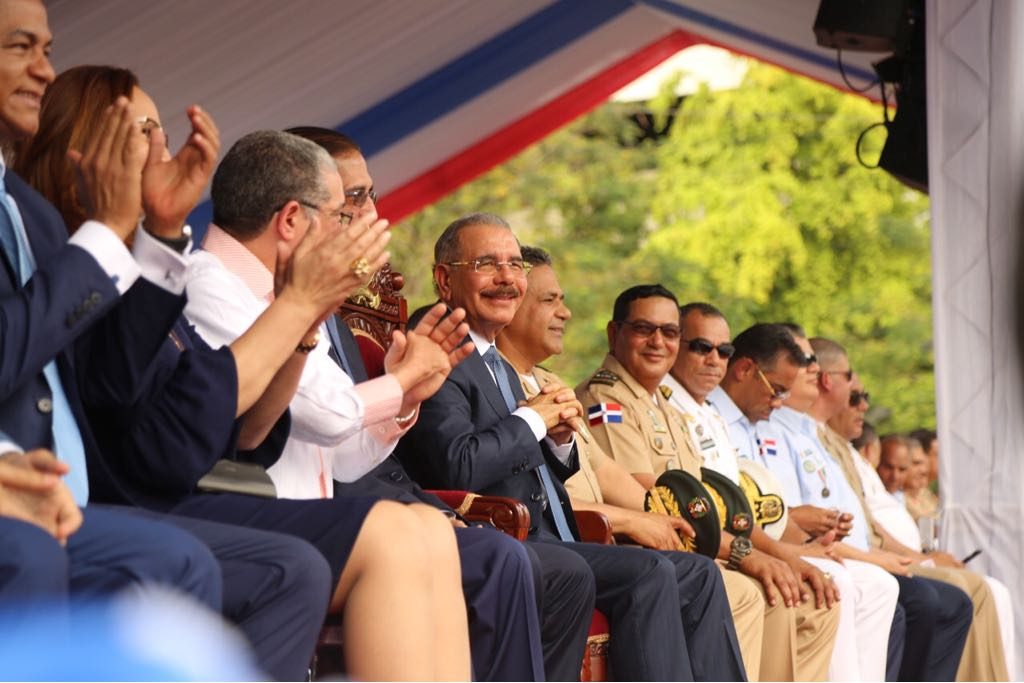 En la tarima presidencial también estuvieron el director general de Comunicación y portavoz del Gobierno, Roberto Rodríguez Marchena; así como los asistentes especiales del jefe de Estado, Carlos Pared Pérez, Robert de la Cruz y Miguel Mercedes.