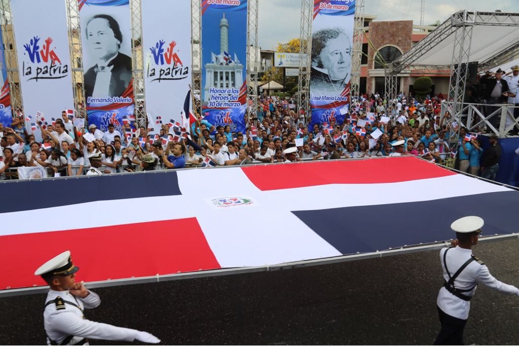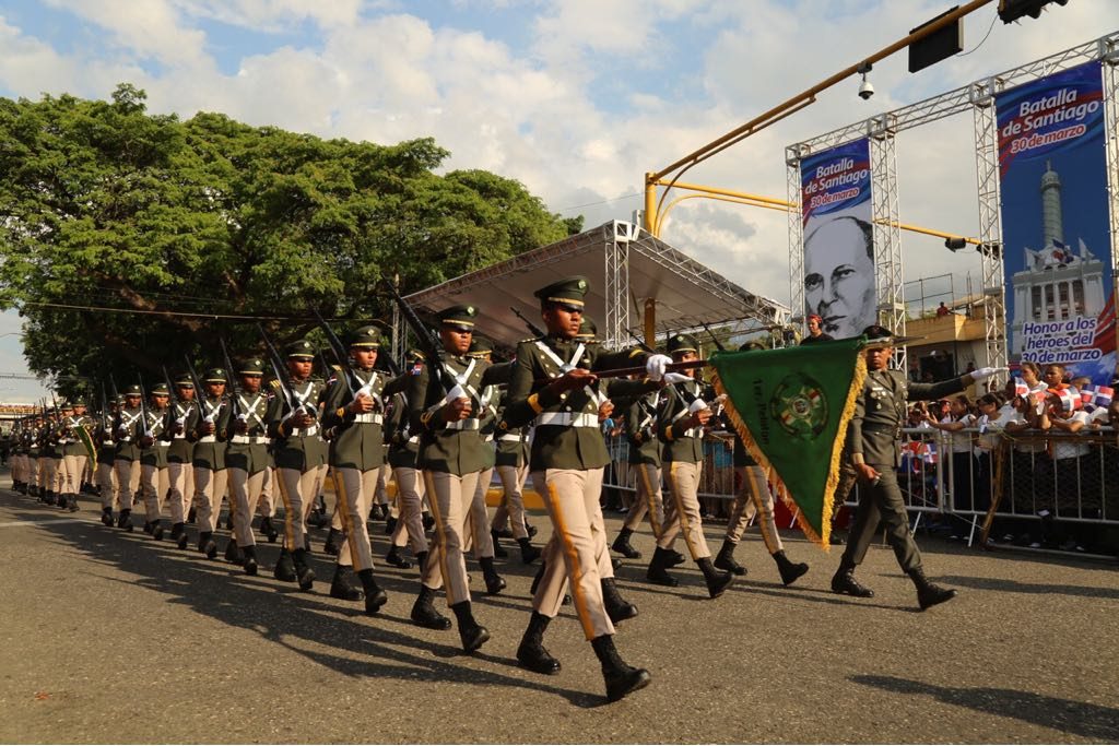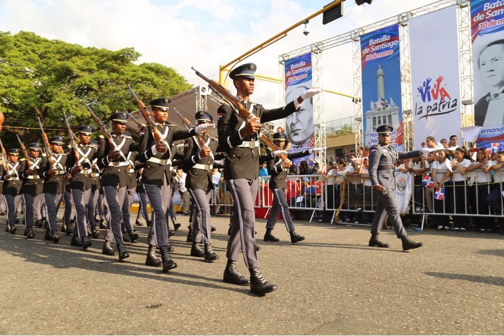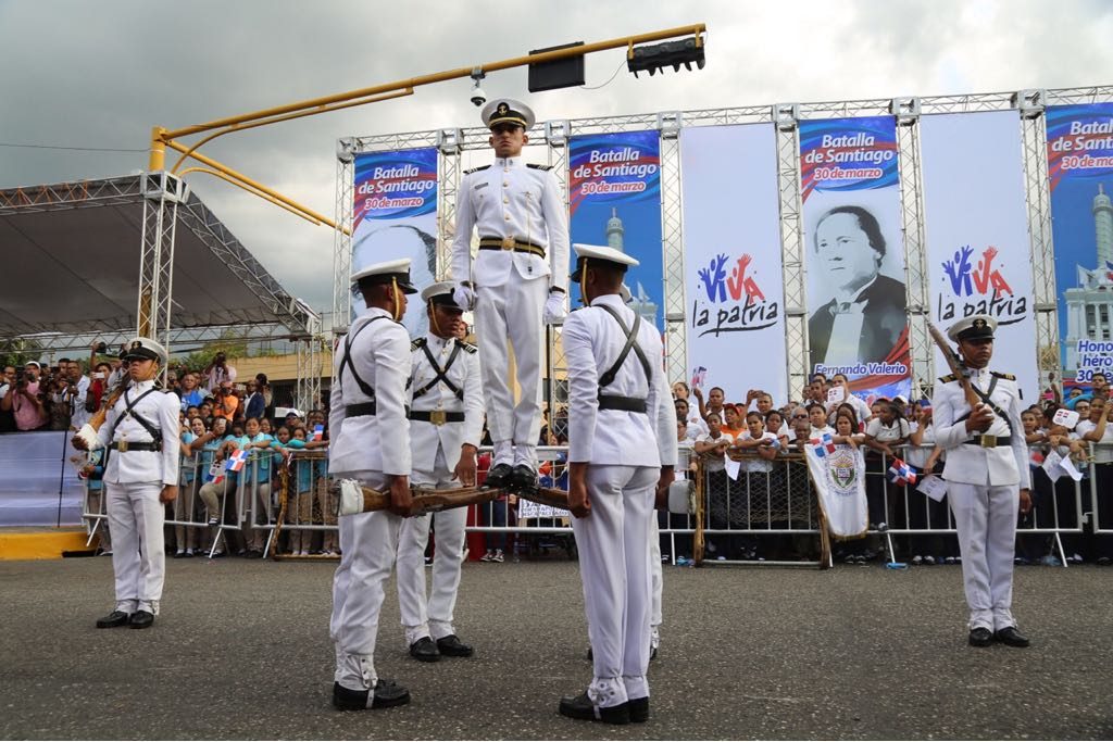 Santiago. – El presidente Danilo Medina se unió a los santiagueros para rendir tributo a los combatientes de la Batalla del 30 de Marzo, al encabezar esta tarde el desfile cívico-militar y policial en conmemoración del 174 aniversario del acontecimiento que consolidó la Independencia Nacional.