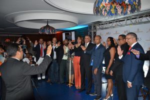 Santiago; Brenda Sánchez, directora general del Gran Teatro del Cibao; Alberto Mota, presidente saliente de la ALS; Frank Rodríguez, presidente entrante, Carlos Arroyo, secretario general del Colegio Dominicano de Periodistas Seccional Santiago; y Juan González Caba.