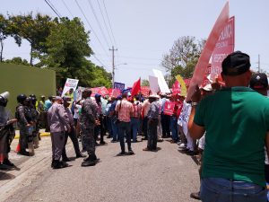 Decenas de agentes policiales vigilaron de cerca la manifestación cuyos participantes, portando pancartas con leyendas alusivas a sus reclamos, se congregaron en los alrededores del Ministerio de Agricultura.