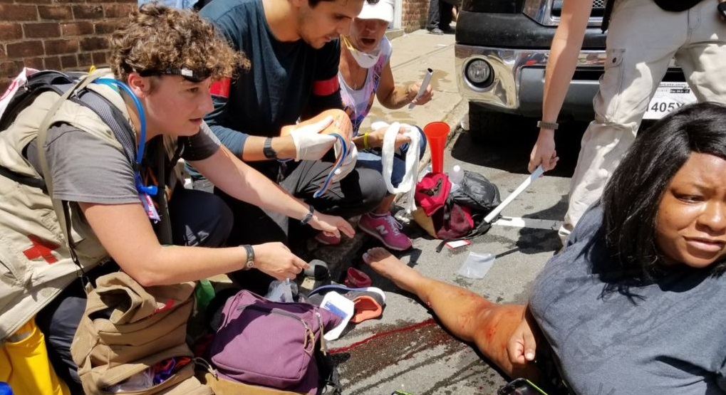 La Unión de Libertades Civiles Americanas, ACLU capítulo de Virginia, denunció que contra-manifestantes fueron atropellados por un vehículo, que se devolvió contra ellos después de que uno de ellos -según un testigo- le lanzó una piedra.