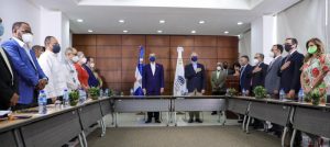 Acompañaron al presidente, el ministro Administrativo de la Presidencia, José Ignacio Paliza; así como los viceministros de Trabajo para Relaciones Sociales y Empresariales, Sabrina de la Cruz y para Inspecciones, Julián Mateo Jesús.