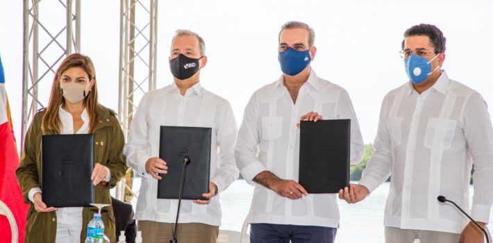 BOCA CHICA. – El presidente de la República, Luis Abinader, encabezó este lunes la firma de dos acuerdos, entre el Ministerio de Turismo, el Banco Interamericano de Desarrollo (BID) y la Asociación de Hoteles y Turismo de República Dominicana (ASONAHORES) para la intervención de 35 playas, como parte del proyecto de rescate para futuro inmediato.