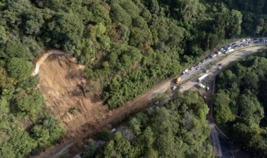 El fin de semana una parte de un cerro se derrumbó, cubriendo unos 100 metros las dos vías principales que salen y entran a la ciudad desde el occidente.