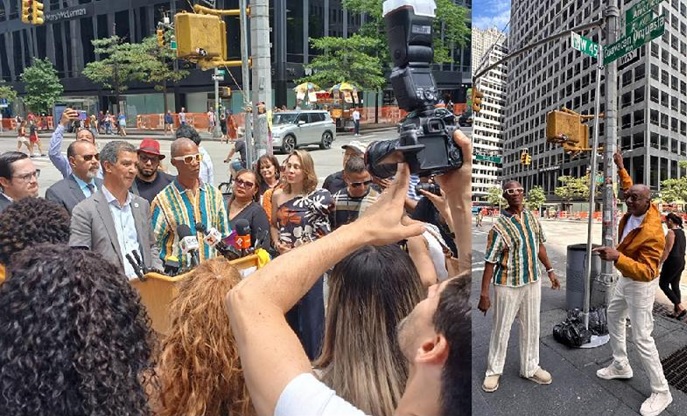 NUEVA YORK.- El Comisionado de Transporte en esta ciudad (DOT), el dominicano Ydanis Rodríguez, encabezó el pasado fin de semana el acto de designación de “Guayacán Orquesta Way”a la esquina de la Calle 45 con 6ta. Avenida en Manhattan, un reconocimiento de la Alcaldía de NYC a los 35 años de trayectoria artística de la icónica agrupación colombiana y en conmemoración del 215 aniversario de la independencia de Colombia.