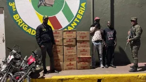 SAN JUAN,- Miembros del S-2pertenecientes a la Dirección de Inteligencia G-2 y de la uniformada del Ejército de República Dominicana (ERD) informaron que fueron detenidos dos nacionales haitianos con estatus migratorio irregular, contrabandeando cigarrillos la madrugada de este martes 26 de marzo en la provincia de San Juan.